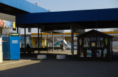 Пустує й автовокзал. Магазинчики, біля яких зазвичай стоїть черга, тепер зачинені. Лише один продуктовий кіоск безпосередньо біля вокзалу працює, відчинені і двері обмінника.