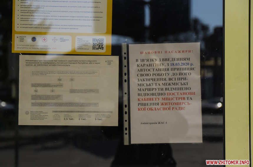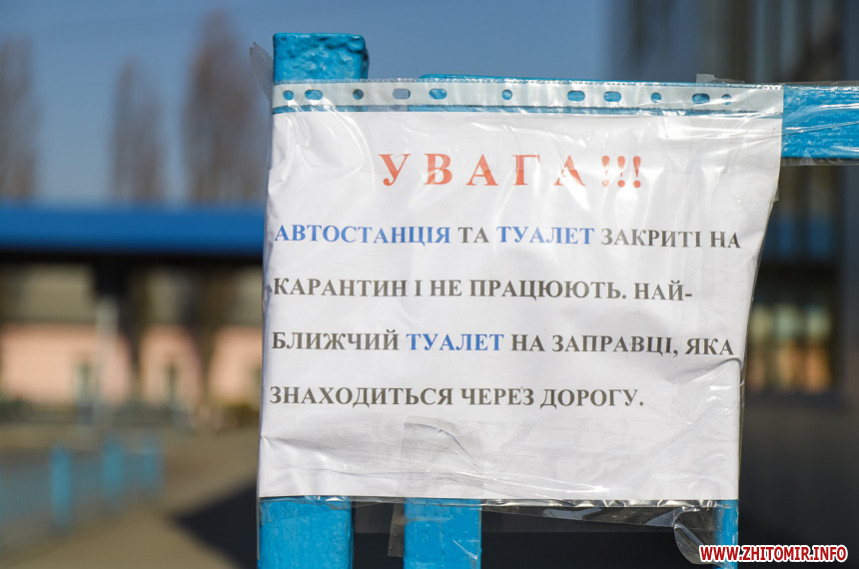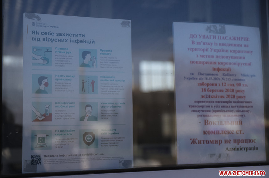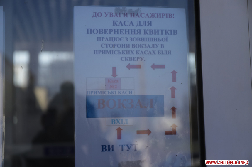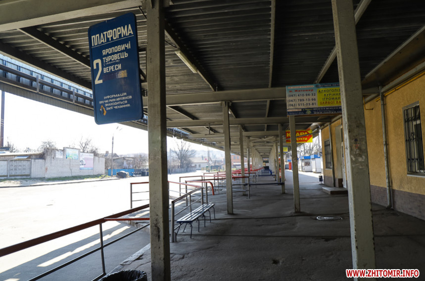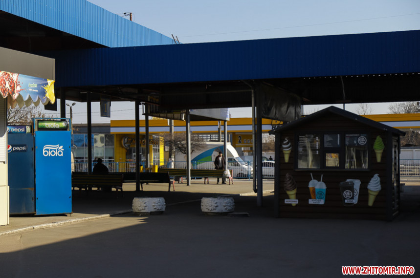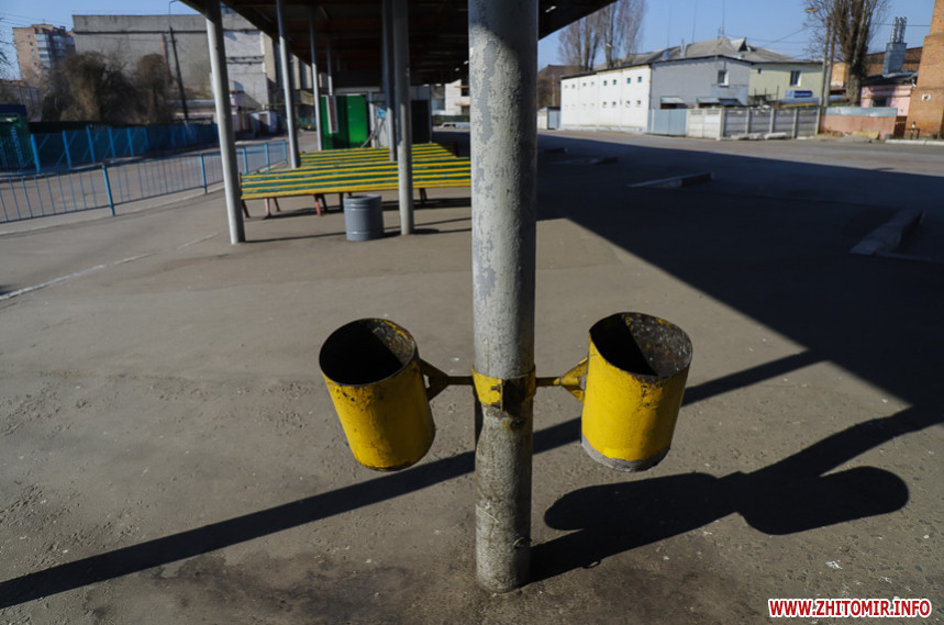Авто- та залізничний вокзали у Житомирі нині незвично малолюдні. Лише поодинокі перехожі з’являються в цих зазвичай гамірних місцях.