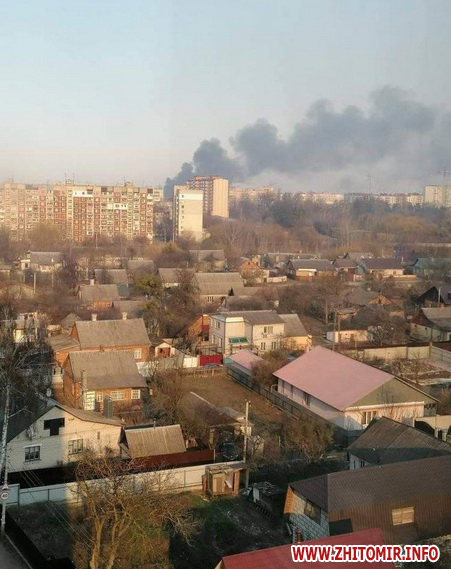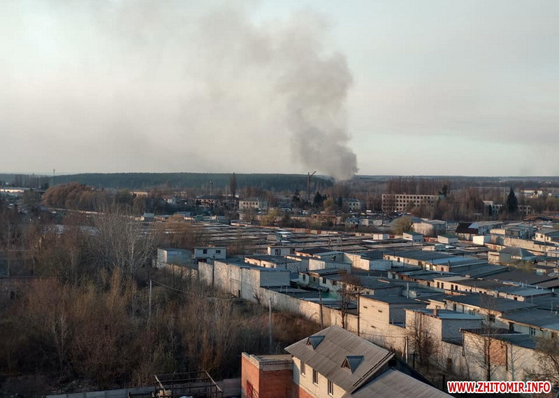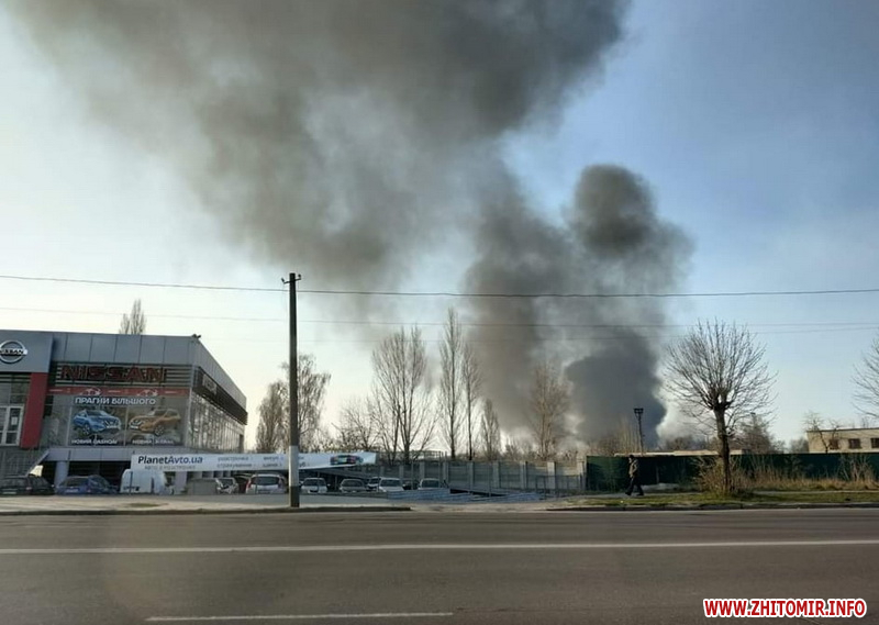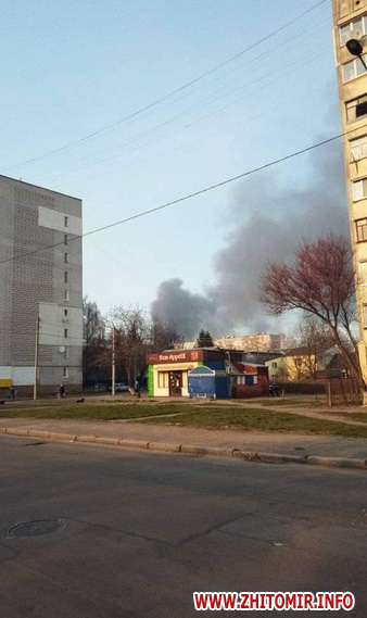 5 квітня у Житомирі сталася пожежа. Фото з чорним стовпом диму почали публікувати в соцмережі близько 18:00. Користувачі фейсбук вказували, що горить щось поблизу Малинського ринку.