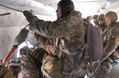 Перед тим, як піднятися в небо військові проходять інструктаж, і вже після нього у кількості 16 людей підіймаються на борт гвинтокрила. Цього року програма стрибків виконується вперше, серед десантників є й ті хто ніколи не здійснював політ з парашутом.
