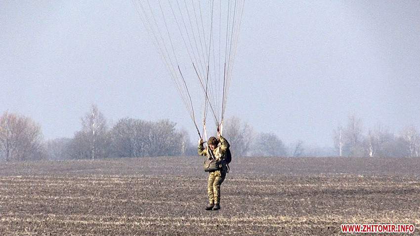 Понад 150 військовослужбовців особового складу 95-ї окремої десантно-штурмової бригади 6 квітня на полігоні здійснюють стрибки з парашутом.