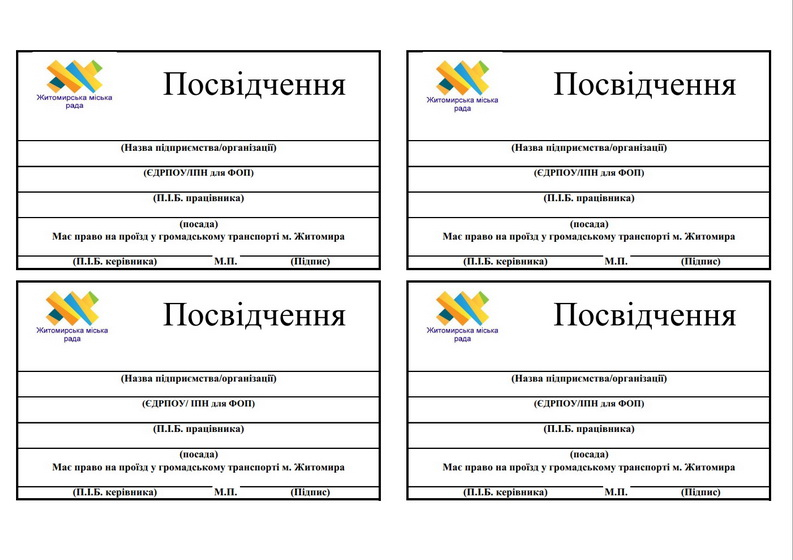 Такими посвідченнями керівники підприємств та організацій мають бути забезпечені впродовж двох днів. Для оформлення посвідчень своїм працівникам. Їм необхідно здійснити реєстрацію на офіційному сайті Житомирської міської ради за посиланням https://forms.gle