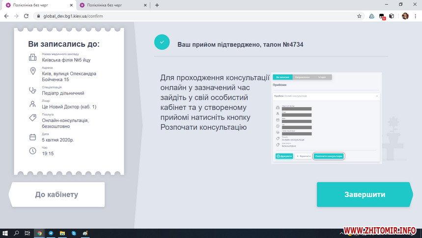 Про це Житомир.info 6 квітня повідомив пресцентр сервісу «Поліклініка без черг».
