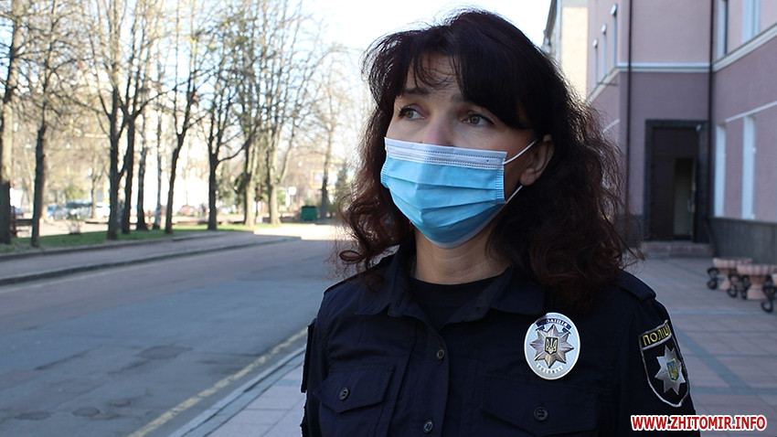 «У поліцейських немає завдання масово оформляти адміністративні матеріали або масово накладати стягнення на людей. В першу чергу, завдання довести, переконати в необхідності використання засобів індивідуального захисту. Головне залишатися по можливості вдома, щоб унеможливити контакт. Ми маємо виходити з цієї ситуації, бо кожен громадянин може бути потенційно інфікований», – каже речниця ГУНП у Житомирській області Алла Ващенко.