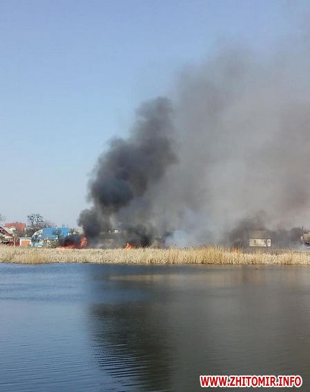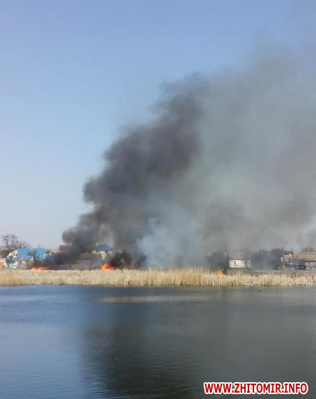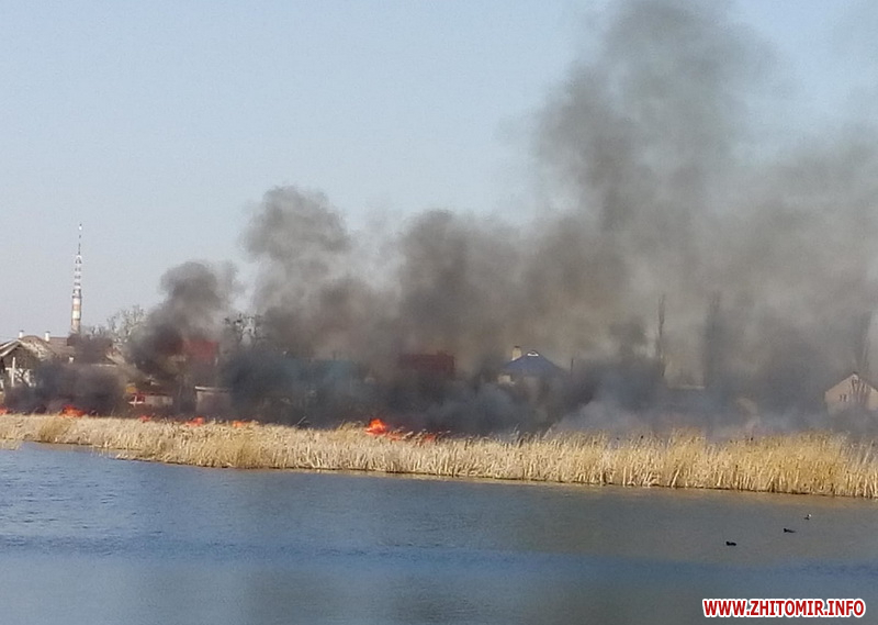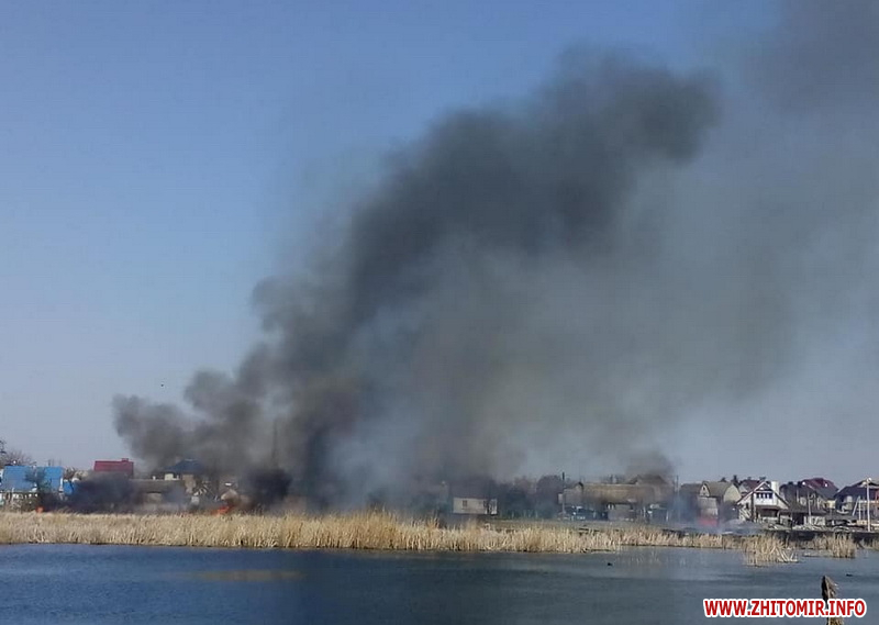 Нагадаємо, минулими вихідними, 4 квітня, житомирян налякав чорний стовп диму, який було видно з кількох районів міста. Як з’ясувалося – горів сухий очерет на водоймі в мікрорайоні Крошня.