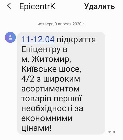 Мер Сергій Сухомлин закликав житомирян ігнорувати смс-повідомлення про відкриття «Епіцентру», яке заплановане на найближчі вихідні.