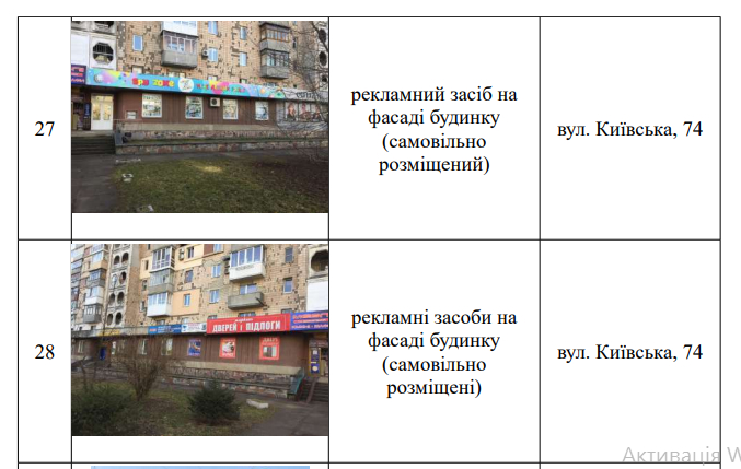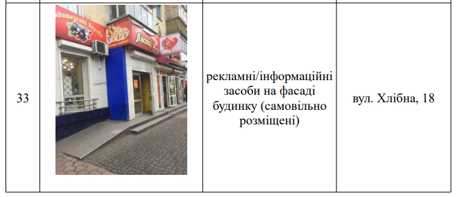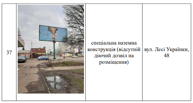 У додатку до проєкту рішення 37 адрес, де носії реклами підлягають демонтажу.