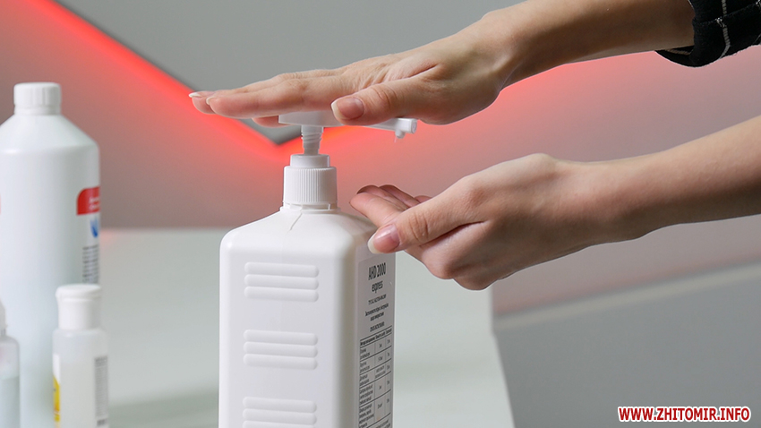 Лікар-дерматолог пояснює, як правильно наносити дезінфікуючий засіб.