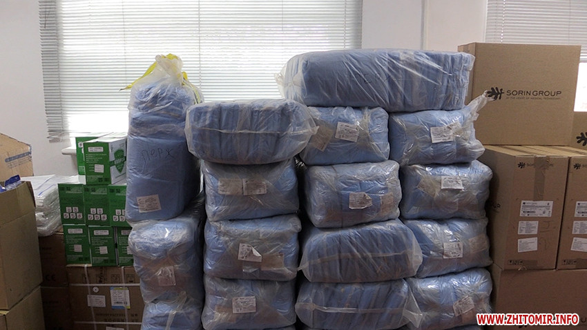 «Вчора у нас надійшли костюми від фабрики «LESYA» – 2000 комплектів. І ще партія – 3600 костюмів. Сьогодні також надійшли ПЛР-тести. Ми забезпечені достатньо ПЛР-тестами для діагностики. Ми їх одразу передали у лабораторний центр. Додатково надійшло ще 4442 костюми через Міністерство охорони здоров’я та Офіс президента. Біля 20 000 масок, приблизно 21 000 респіраторних масок, 1100 бахіл та 977 окулярів – це те, що вчора і сьогодні надійшло. Частину ми розподілили одразу, інша частина буде розподілена сьогодні-завтра», – каже начальник управління охорони здоров’я Житомирської ОДА Микола Суслик.