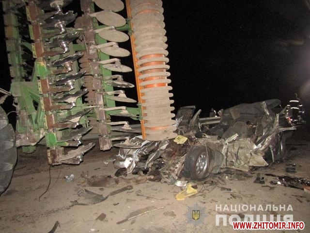 «У Малинському районі аварія. Легковик в’їхав у трактор. У трактора ще був причеп чи то плуг чи установка для дискування землі. Там з машини нічого живого не лишилось, перед геть розбитий. І люди загинули», – розповіли читачі.