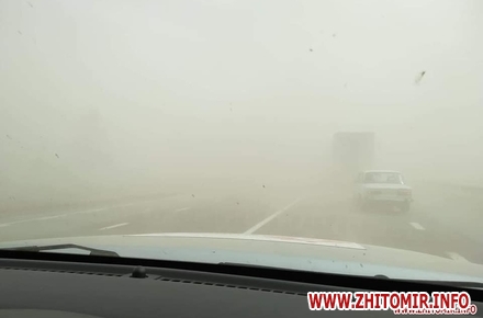 «Сильний поривчастий вітер, що піднімає пісок та задимленість стали причиною зниження видимості та безпеки руху на М-06 Київ-Чоп (від Житомира до Рівного) та кількох ділянок М-07 Київ-Ковель-Ягодин. Служба автомобільних доріг у Житомирській області звертається до водіїв бути вкрай уважними під час руху на небезпечних ділянках. Погодні умови вимагають дотримуватися такого швидкісного режиму, щоб видимої відстані вам вистачило для екстреної зупинки. Ніколи не поспішайте і не намагайтеся швидше вибратися зі смуги обмеженої видимості», - йдеться у повідомленні.