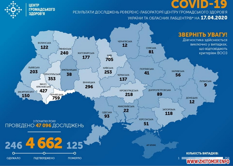 Як повідомляв Житомир.info, станом на 9.00 16 квітня 2020 року в Україні лабораторно підтверджено 4161 випадок коронавірусної хвороби: 397 виявили впродовж останньої доби.