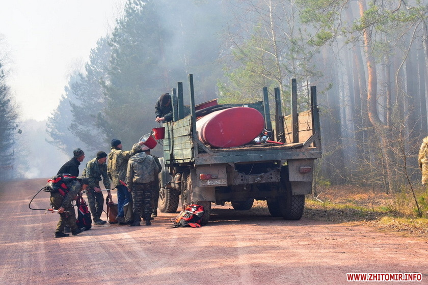 «Наразі тривають роботи по наданню допомоги працівникам лісгоспів у гасінні лісових пожеж у Виступовицькому лісництві ДП «Овруцьке СЛГ» (с. Рудня) та Бережестському лісництві ДП «Овруцьке ЛГ» (с. Бережесть) Овруцького району. Також вогнеборці залученні до гасіння пожеж у Поясківському лісництві ДП «Білокоровицьке ЛГ», Журжовицькому лісництві ДП «Олевське ЛГ» та Олевському лісництві ДП «Олевське ЛГ» Олевського району. Усі загоряння виникли 16 квітня. Вогняну стихію посилює сильний поривчастий вітер. Через це вогонь поширюється з великою швидкістю та за лічені секунди охоплює значні території. Станом на 13:00 над їх ліквідацією працює 71 рятувальник та 17 спецавтомобілів, 311 працівників лісництв та 25 одиниць техніки. Також залучено 3 літаки АН-32П від ДСНС», – повідомляють рятувальники.