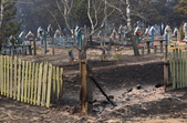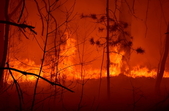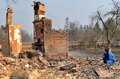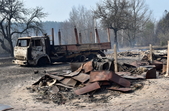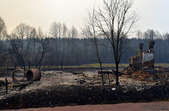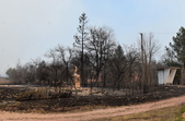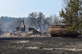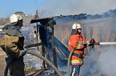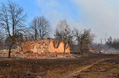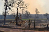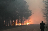 У с.Острови Овруцького району лісова пожежа перекинулась на будинки. Під час гасіння вогню місцевий житель отримав опіки.