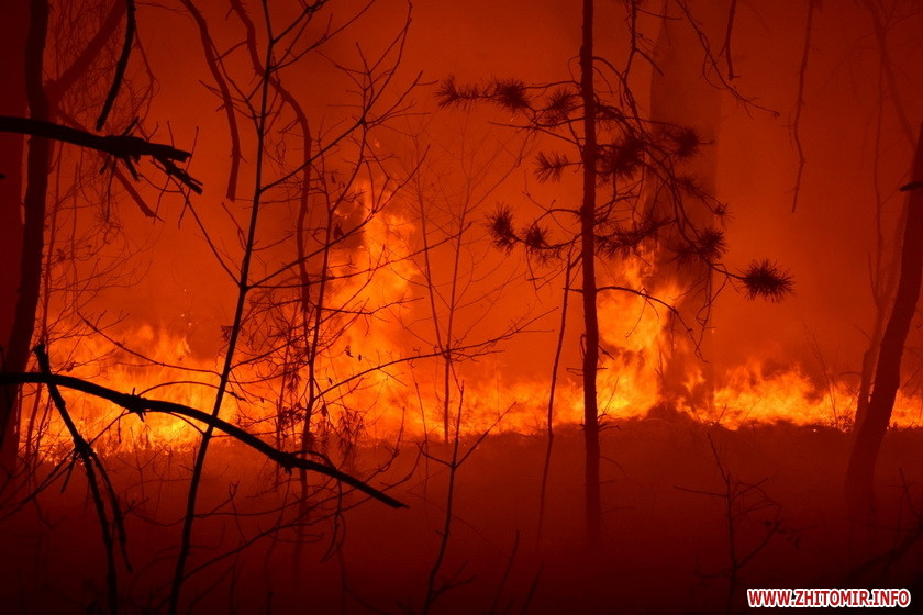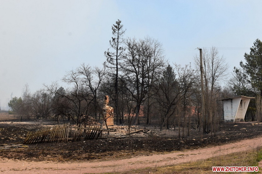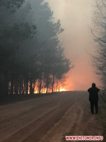На території 9 лісгоспів Житомирської області 16 квітня почалися лісові пожежі в результаті підпалу сільгоспугідь та випалення трави в домогосподарствах. За наявності поривчастого шквального вітру більше 30м/с вогонь швидко розповсюдився на великі площі лісів і будинки. Зокрема горять ліси поблизу сіл в Овруцькому та Олевському районах. У прокуратурі розпочали кримінальне провадження.