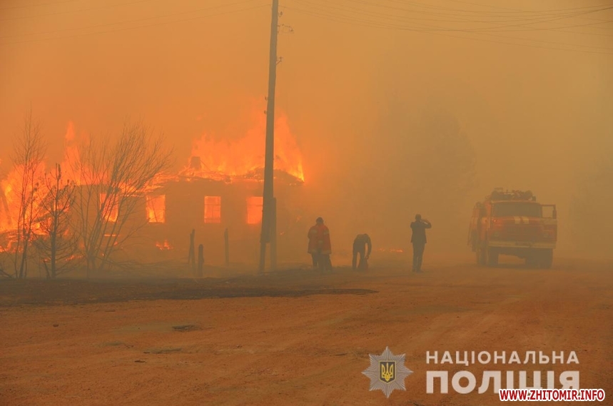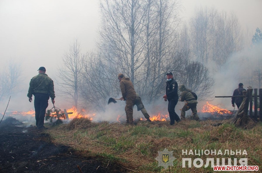 У відділі комунікації поліції Житомирської області, посилаючись на дані УДСНС в області, інформують, що упродовж 16-17 квітня на території Житомирщини, відповідно до інформації УДСНС області, зареєстровано 22 масштабні пожежі у лісових масивах Лугинського, Овруцького, Олевського та Радомишльського районів загальною площею до 6 тисяч гектарів. Пожежі частково локалізовано, але небезпека залишається. Вогонь виникає як у лісових масивах, так і на відкритих територіях через загоряння сухої трави.