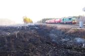 До гасіння масштабної лісової пожежі на півночі Житомирської області залучили потяг «Укрзалізниці».