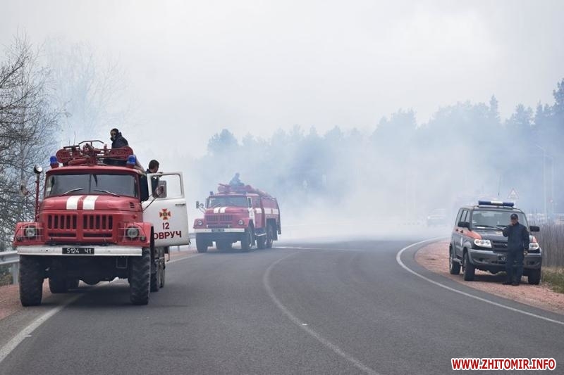 «Довготривалий процес гасіння лісових пожеж на території Житомирської області пов'язаний з неможливістю доступу особового складу до окремих осередків пожежі через сильну захаращеність лісових масивів та відсутністю доріг протипожежного призначення. Для створення мінералізованих смуг та розчищення доріг залучені трактори лісогосподарських підприємств та важка інженерна техніка ЗСУ», – проінформував Володимир Демчук.