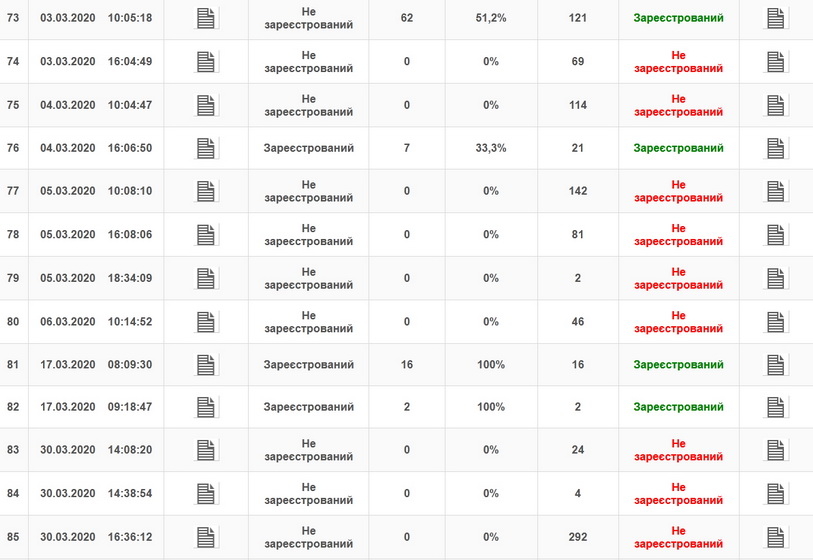 Скріншот з сайту Верховної ради про реєстрацію у березні 2020 року нардепа Лабунської та відсоток голосувань