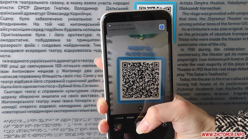 Крім того, біля театрів, музеїв та інших відомих пам'яток у Житомирі вже з'явилися інформаційні таблички з QR-кодом, який дозволяє дізнатися більше про даний об'єкт.