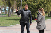 На таких екскурсіях глядачам він пропонує презентацію та інтерактив у вигляді запитань про певний об'єкт чи подію, пов'язану з нашим містом.