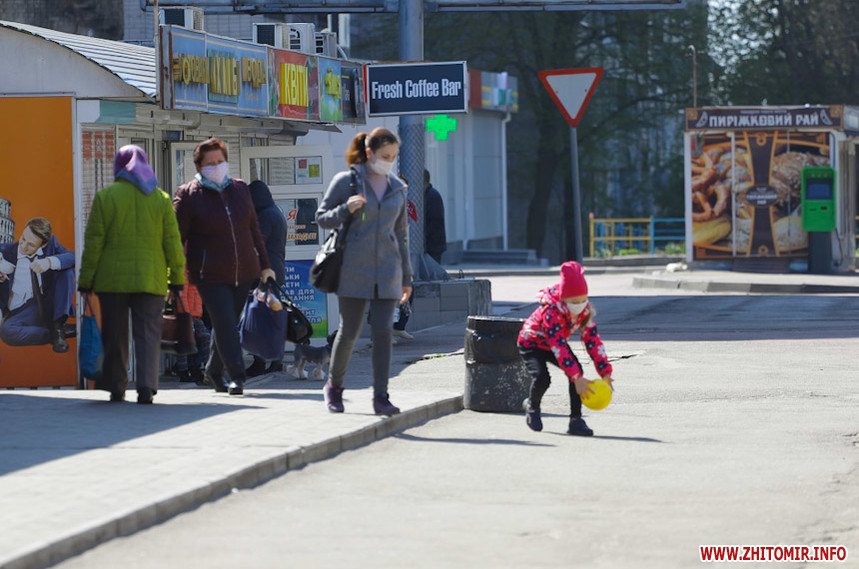 Житомиряни вже другий місяць на карантині. Маски стали невід’ємним аксесуаром при виході з дому. Однак, до рекомендації тримати дистанцію люди не так охоче дослухаються.