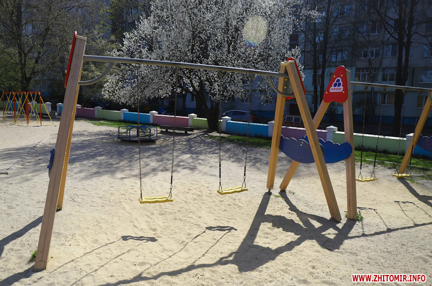 Який вигляд мають дитячі майданчики та двори у Житомирі під час карантину дивіться у фоторепортажі