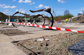 А ось з фонтаном та сквером на Польовій ситуація зовсім інша. Тут не видно, ані техніки, ані будівельників. За словами радника міського голови Олександра Черняховича, підрядник не погодився на виплату після карантину.