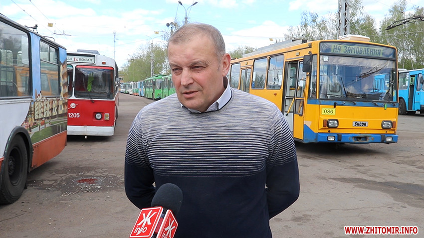 «Перш за все, змінилася кількість випуску. Суттєво змінилося, раніше ми випускали 86 тролейбусів, 12 трамваїв і 15 одиниць автобусів. Зараз ми випускаємо 36 тролейбусів, 18 вдень і 32 ввечері, а також 7 трамваїв. Автобуси у нас два маршрути: по 4 одиниці і 6 одиниць», - розповів директор КП «Житомирське трамвайно-тролейбусне управління» Андрій Нечуйвітер.