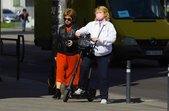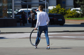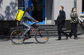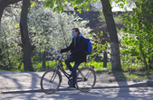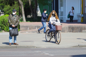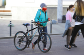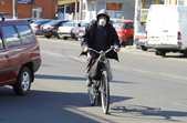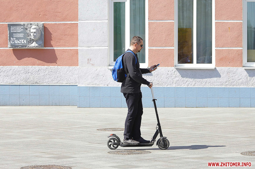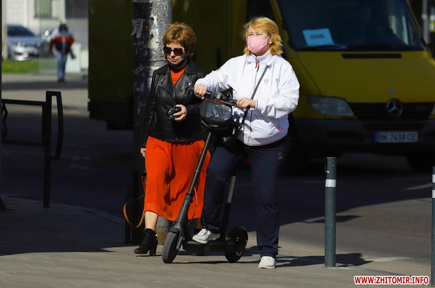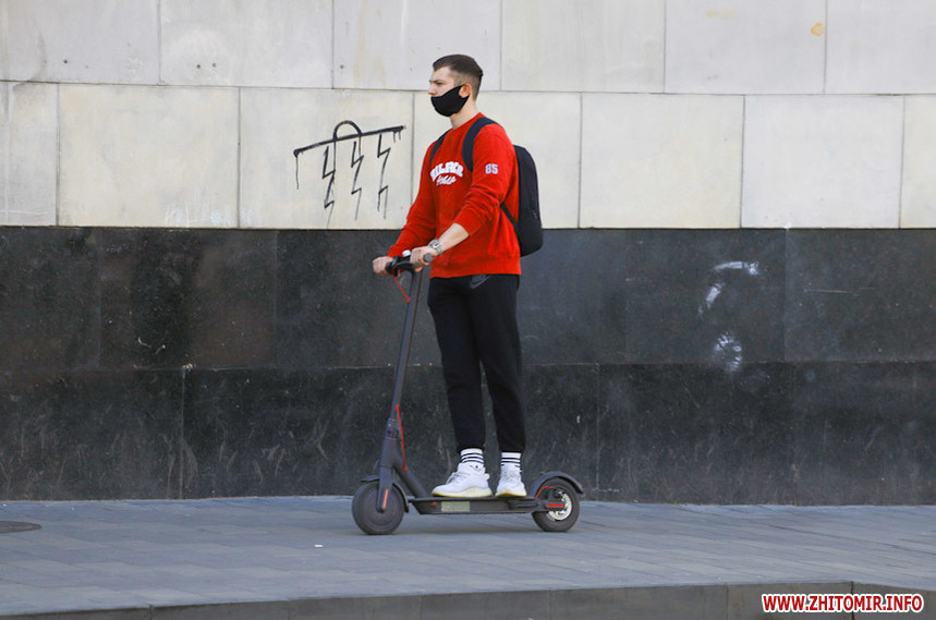 Трохи менше людей пересуваються на самокаті. Обов’язковим весняним аксесуаром є маска.