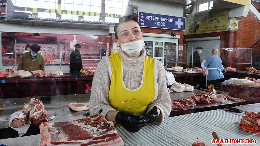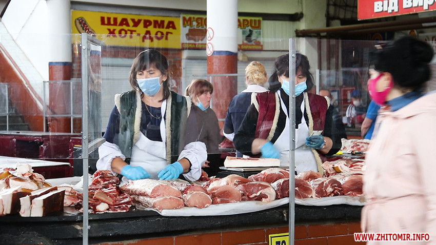 «Закуповувались матеріали і робили захисні екрани. М'ясний павільйон не заповнений в тому об'ємі, в якому був заповнений до карантину, бо навіть закупити тварин для забою, люди не мають зараз можливостей. Це потрібно декілька тижнів, щоб відновити роботу у повному об'ємі і для того, щоб покупців було більше, має працювати громадський транспорт», - говорить заступник директора підприємства «Житомирський кооперативний ринок» Юрій Прудніков.