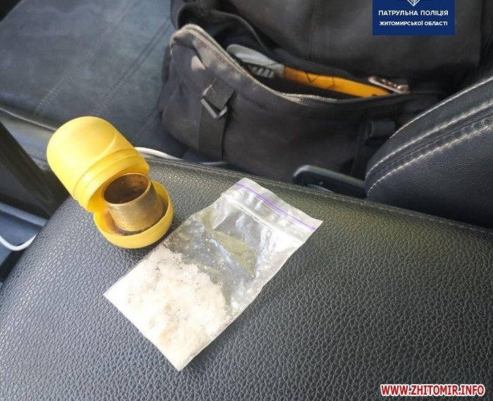 На вулиці Михайла Грушевського у Житомирі 10 травня патрульні зупинили автомобіль ВАЗ, підозрюючи, що у ньому їдуть особи, причетні до розповсюдження наркотиків. У пасажира автівки знайшли білий порошок