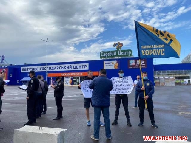 Вранці 12 у Житомирі на Київському шосе біля будівельного гіпермаркету «Епіцентр» активісти Національного корпусу влаштували акцію протесту.