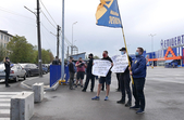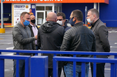 До протестувальників вийшов представник гіпермаркету, який запропонував надіслати письмове звернення.