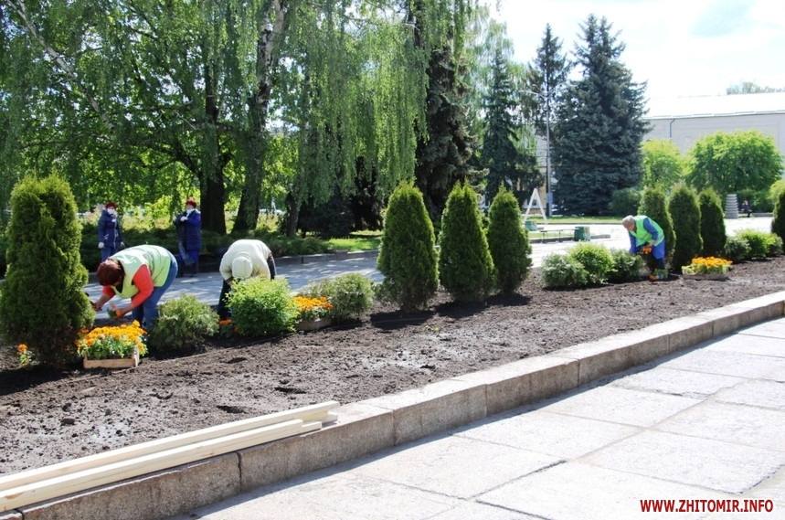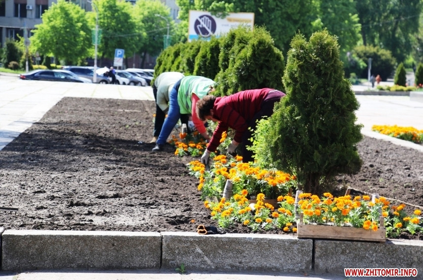 13 травня з житомирського майдану імені С.П.Корольова працівники КП «Зеленбуд» розпочали висадку квітів на клумбах. У зв’язку із загрозою нічних заморозків, першими висаджують найбільш стійкі квіти – тагетес, простіше кажучи – чорнобривці