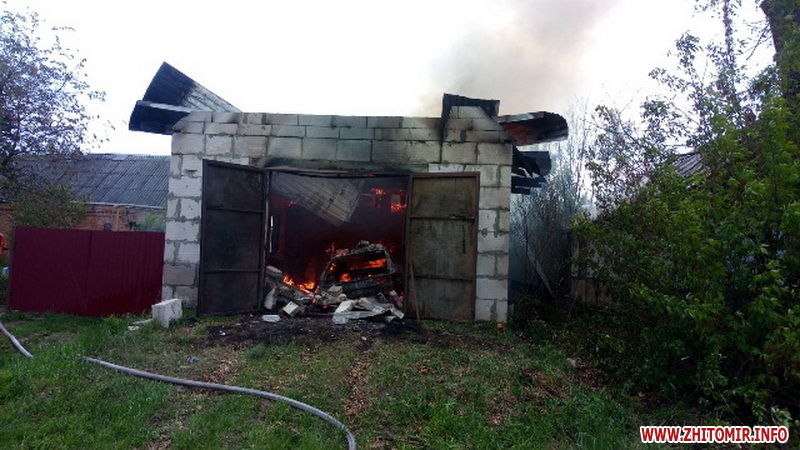 «14 травня о 08:58 по лінії «101» надійшло повідомлення про загоряння гаража на території приватного обійстя в с. Містечно Брусилівського району. На місце події виїхали фахівці 6-ї Державної пожежно-рятувальної частини. На момент прибуття рятувальників піноблочна будівля була повністю охоплена вогнем. В середині неї також горів автомобіль ВАЗ-21081», - йдеться у повідомленні.