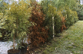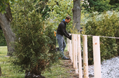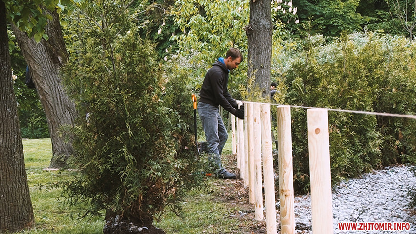 Приводять до ладу «Зелений лабіринт» - проєкт бюджету участі - 2019. Працівники фірми «Корнеліс» замінюють засохлі туї на нові та облаштовують нову огорожу.