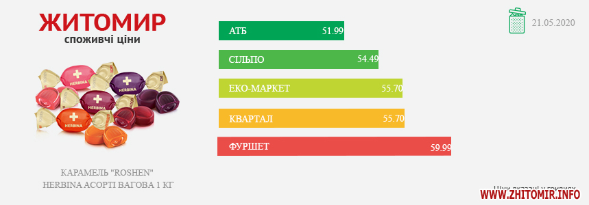 МОНІТОРИНГ ЗДІЙСНЕНО МЕТОДОМ КОНТРОЛЬНОЇ ЗАКУПІВЛІ, У МІСЦЯХ ПРОДАЖУ: AТБ, пр. Миру, 15 А, ЕКО-маркет, вул. Мала Бердичівська, 2/7, Сільпо, майдан Житній ринок, 1, Квартал, вул. Вітрука, 13, Фуршет, вул. Вітрука, 9 а