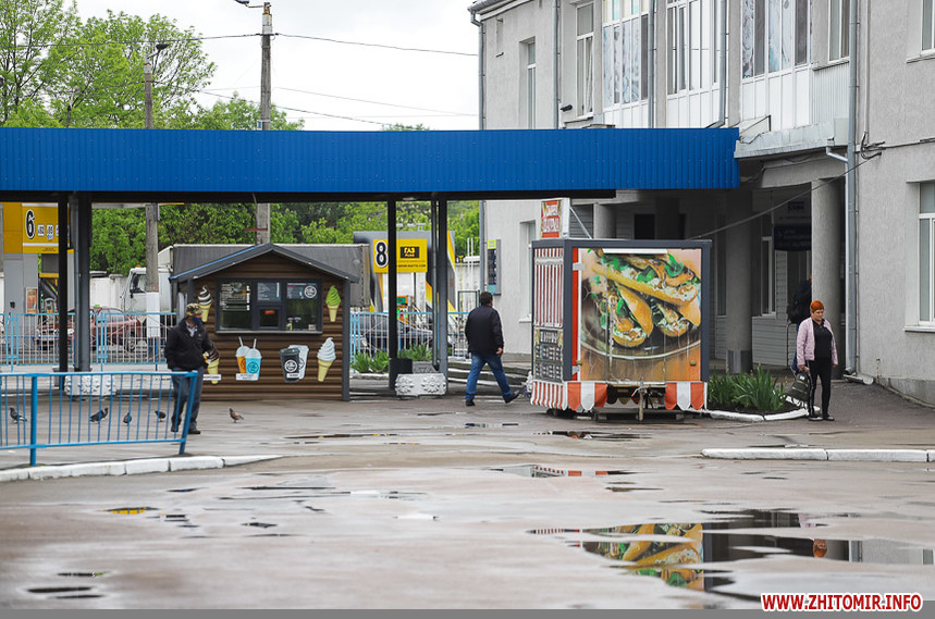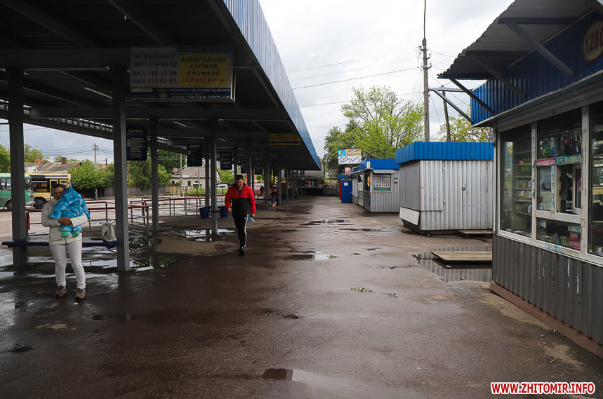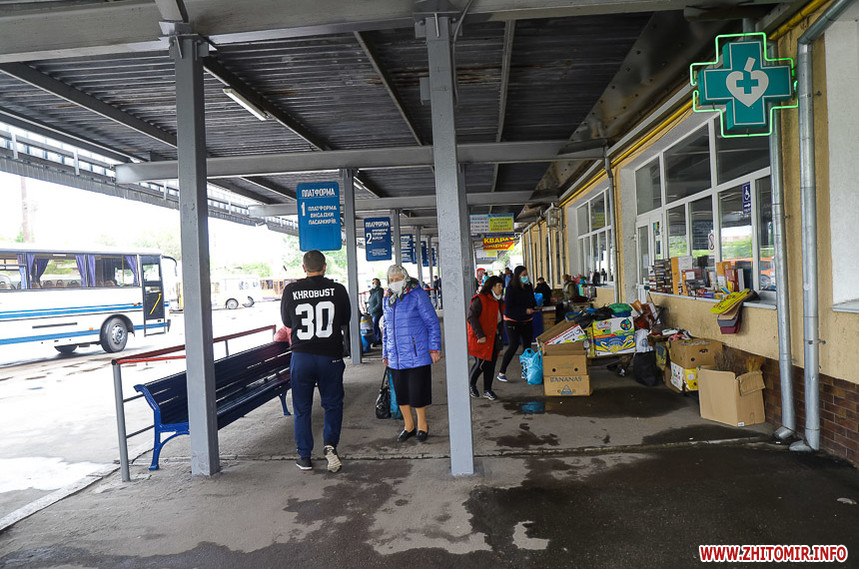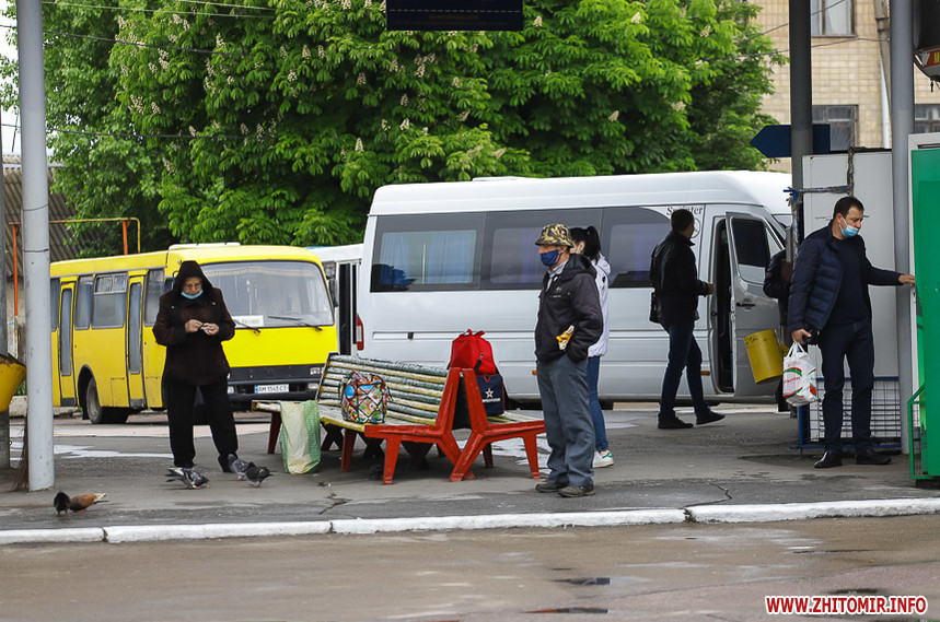 25 травня на центральному автовокзалі Житомира не велелюдно. Поодинокі пасажири в масках чекають на свій рейс. Автобуси їздять лише в межах Житомирської області. Запрацювали і деякі кіоски.