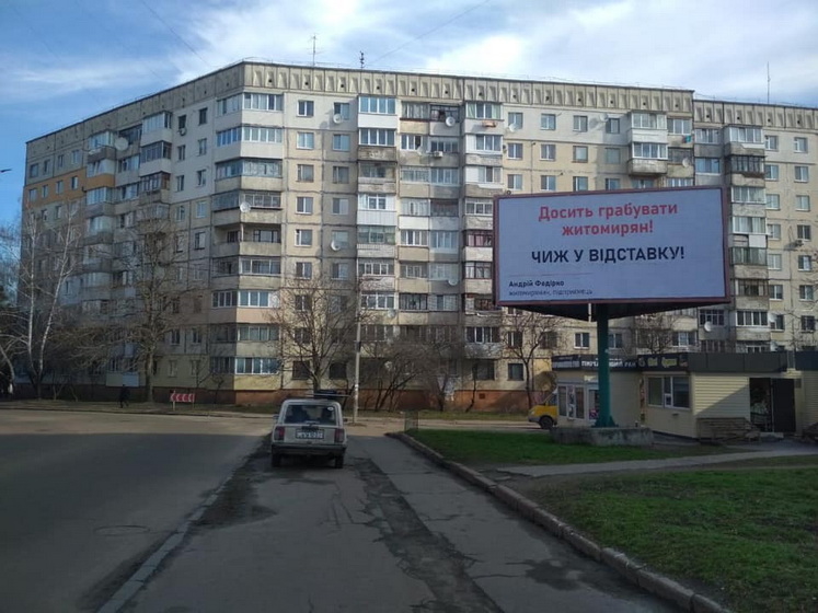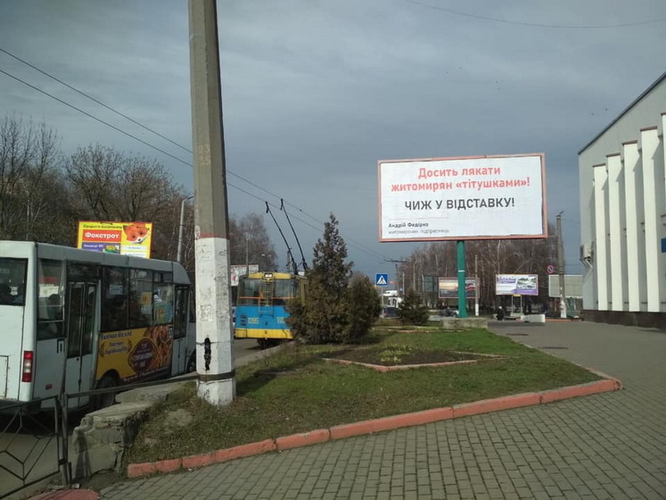 Очевидно, що мова йде про білборди щодо відставки Наталії Чиж, які в березні цього року розмістив у Житомирі Андрій Федірко. Нижче – відповідний допис з його сторінки у Facebook та фото.