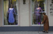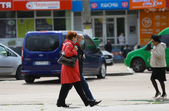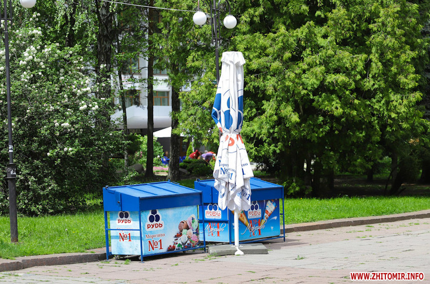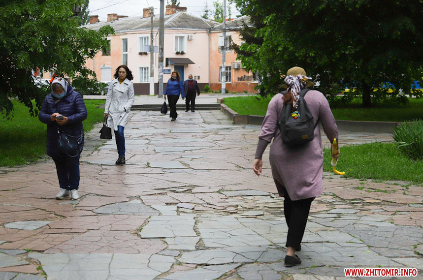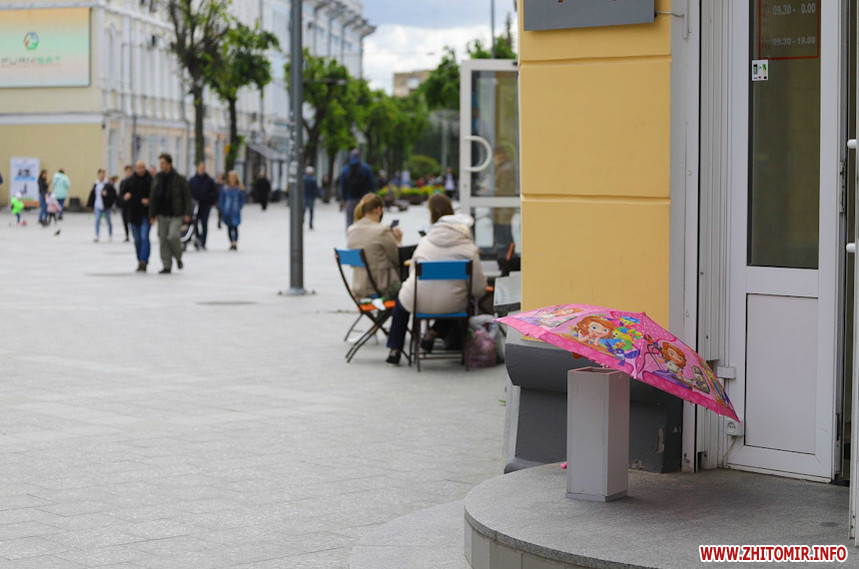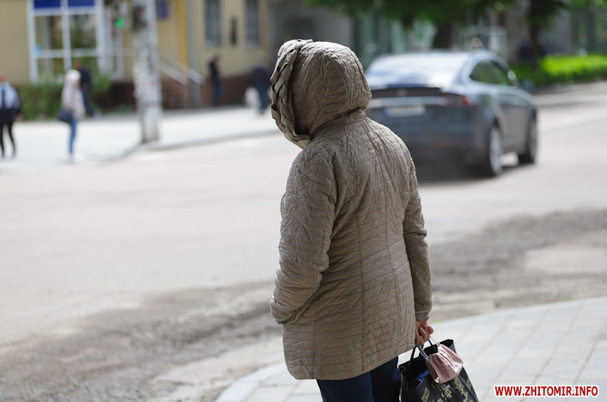Довколишня «картина» у Житомирі нетрадиційна для літньої пори: більшість містян у пальтах чи теплих куртках з капюшонами. Красномовно й символічно про погоду «розповідають» махрові шкарпетки зі сніговиками, вивішені на мотузці для білизни в одному з дворів у центрі міста.