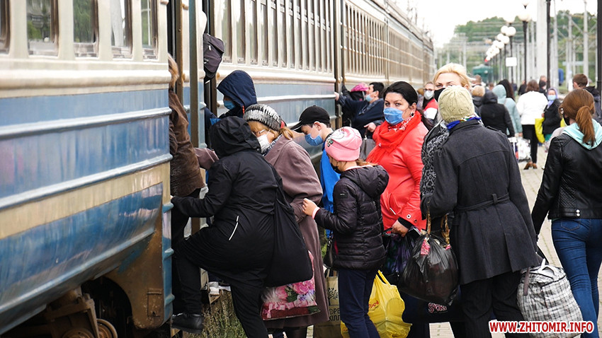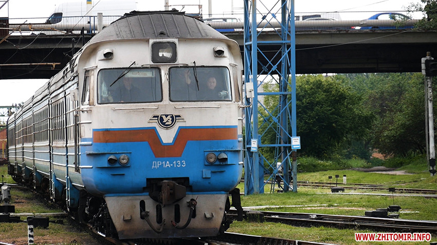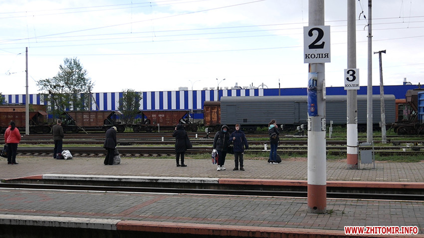 З 1 червня у Житомирі відновили рух приміських поїздів, які прямують до Фастова та Коростеня. На прибуття потягу «Житомир-Коростень» о 17:34 на залізничному вокзалі чекає півсотні людей.