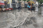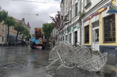 Зранку 2 червня на пішохідній вулиці Житомира – Михайлівській почали знімати останні новорічні декорації: парасольки з різнокольоровою ілюмінацією.