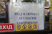 Водій також показує антисептик, який має бути у салоні. Також додає, що пасажирам без масок заходити не дозволяють.