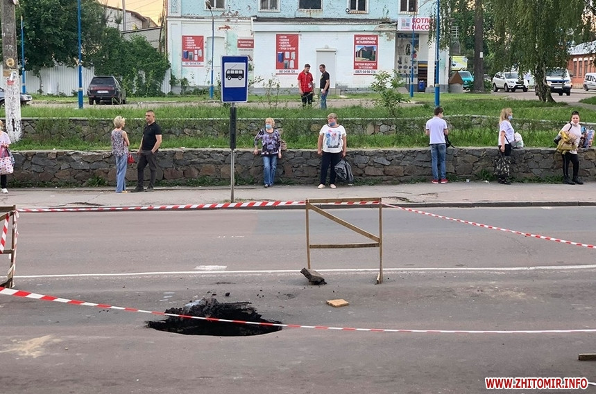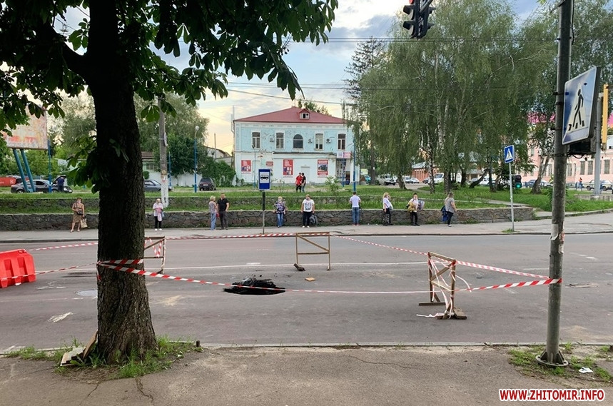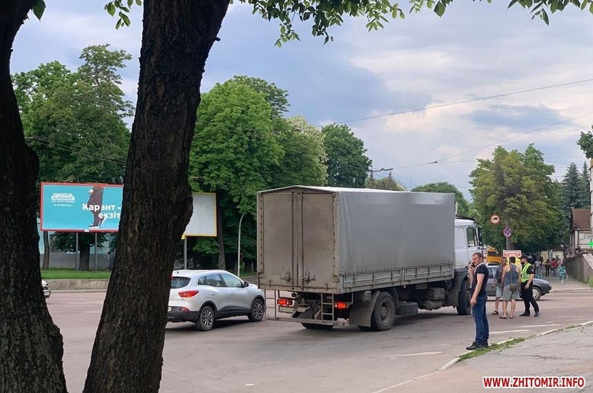 У Житомирі на вулиці Великій Бердичівській, поблизу перетину з вулицею Жуйка, 8 червня вантажний автомобіль потрапив у яму, яка утворилася на асфальті.