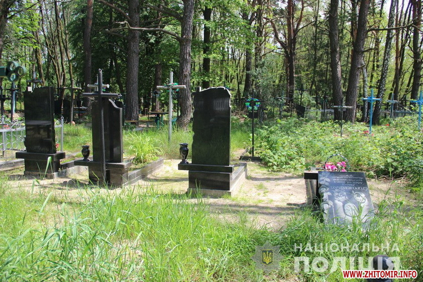 У Малинському районі у с. Нянівці на сільському кладовищі понівечили пам’ятники, хрести та інші ритуальні атрибути на місцях поховань. Поліцейські викрили місцевого жителя.