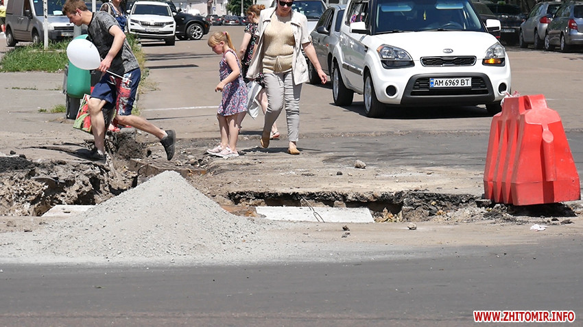 «Вулиця Велика Бердичівська - наразі там проходить капітальний ремонт. Коли я давав останнє інтерв’ю, я казав, що до кінця червня ці роботи повинні бути виконані. Через те, що у нас було два тижні дощів, ми призупинили асфальтні роботи, але роботи підготовчі йшли в будь-яку погоду, тому ми встигаємо по Великій Бердичівській. Якщо все буде гаразд, то зараз проходять останні підготування і на вихідні дні ми вже будемо стартувати з основним останнім шаром асфальтобетону по вулиці Великій Бердичівській. Думаю, що ще півтора-два тижні і ми повністю закінчимо на Великій Бердичівській і вийдемо на нанесення дорожньої розмітки. Що стосується Чуднівської, то та сама ситуація: асфальтування було призупинено на час негоди, але зараз продовжуються роботи з пониження бортів, облаштовуються з’їзди, готується сама основа покриття від магазину «Океан» і в зворотному напрямку, ми плануємо на цьому тижні вже почати асфальтування. Іншу частину - спуск з мосту і вулицю Леха Качинського залишимо на наступних два тижні. В графіки, думаю, ми теж вкладаємось, було обіцяно закінчити до кінця червня», - розповідає заступник Житомирського міського голови Олександр Шевчук.