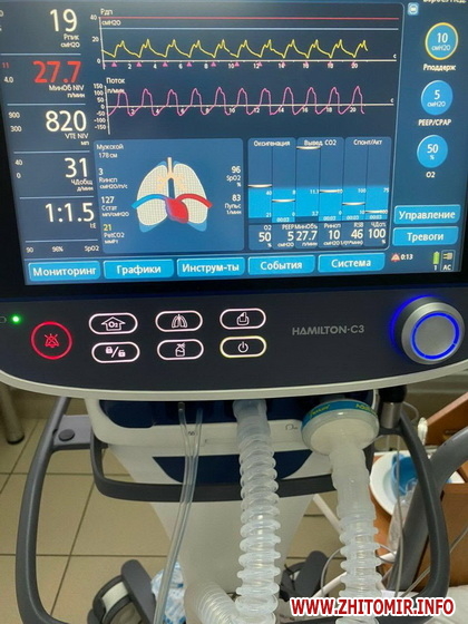 Житомирська лікарня №1 отримала новий апарат штучної вентиляції легенів HAMILTON-C1 від благодійного фонду ПриватБанку «Допомагати просто!».