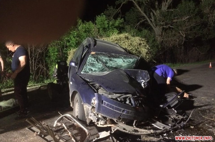 У Ружинському районі Житомирської області близько півночі 12 червня зіткнулися мотоблок і два легковики. У ДТП травмувалися шестеро людей. Деяких постраждалих з понівечених транспортних засобів діставали рятувальники.