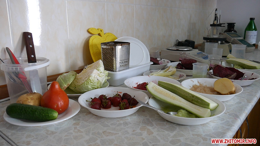 Наостанок в лабораторії показують, як саме відбувається перевірка овочів. Кабачок розрізають, натирають, додають розчин, після чого направляють до спеціального приладу.